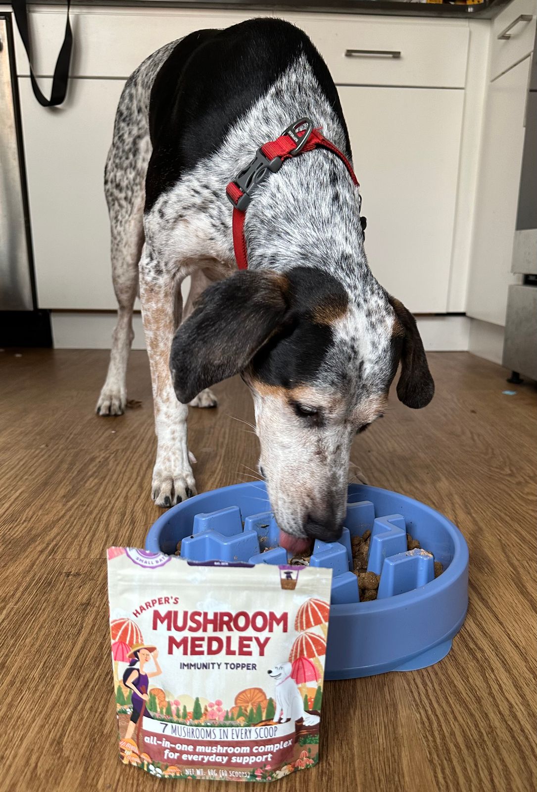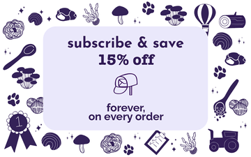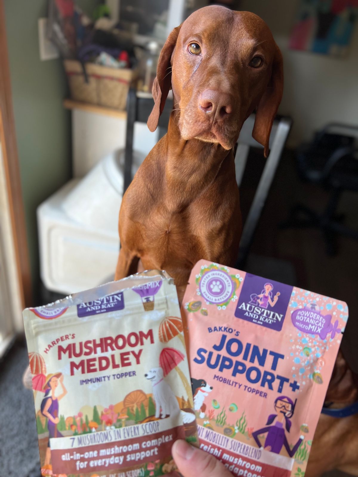 Austin and Kat Organic Mushroom Immune Support  botanical topper for dogs featured ingredient shitake mushroom with bioactive tri-terpenes supports pathogen defense.