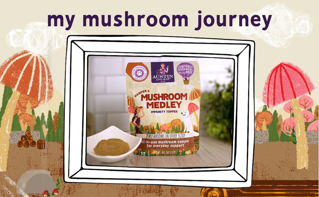 Not only do my dogs get the mushroom medley powder every day, but I do too. To learn more about what I do, skip down to "Kat's Mushroom Smoothie Recipe", but first let me take a meandering path on why I take them...